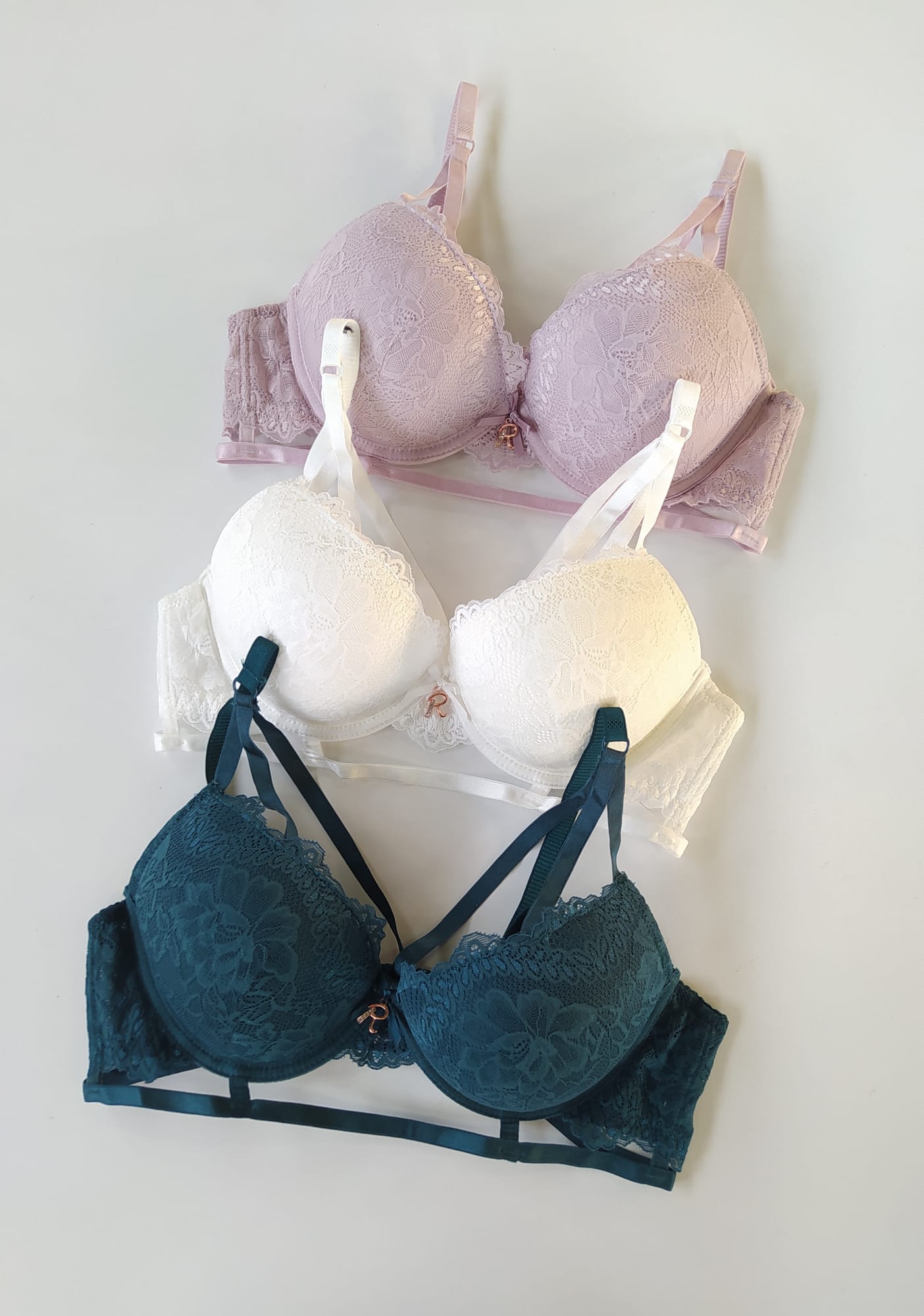 Nasz usztywniany biustonosz z miseczką B na trzy haftki w delikatnej koronce to połączenie elegancji i funkcjonalności. Zapewniając subtelne podtrzymanie, jest idealnym wyborem na każdą okazję.