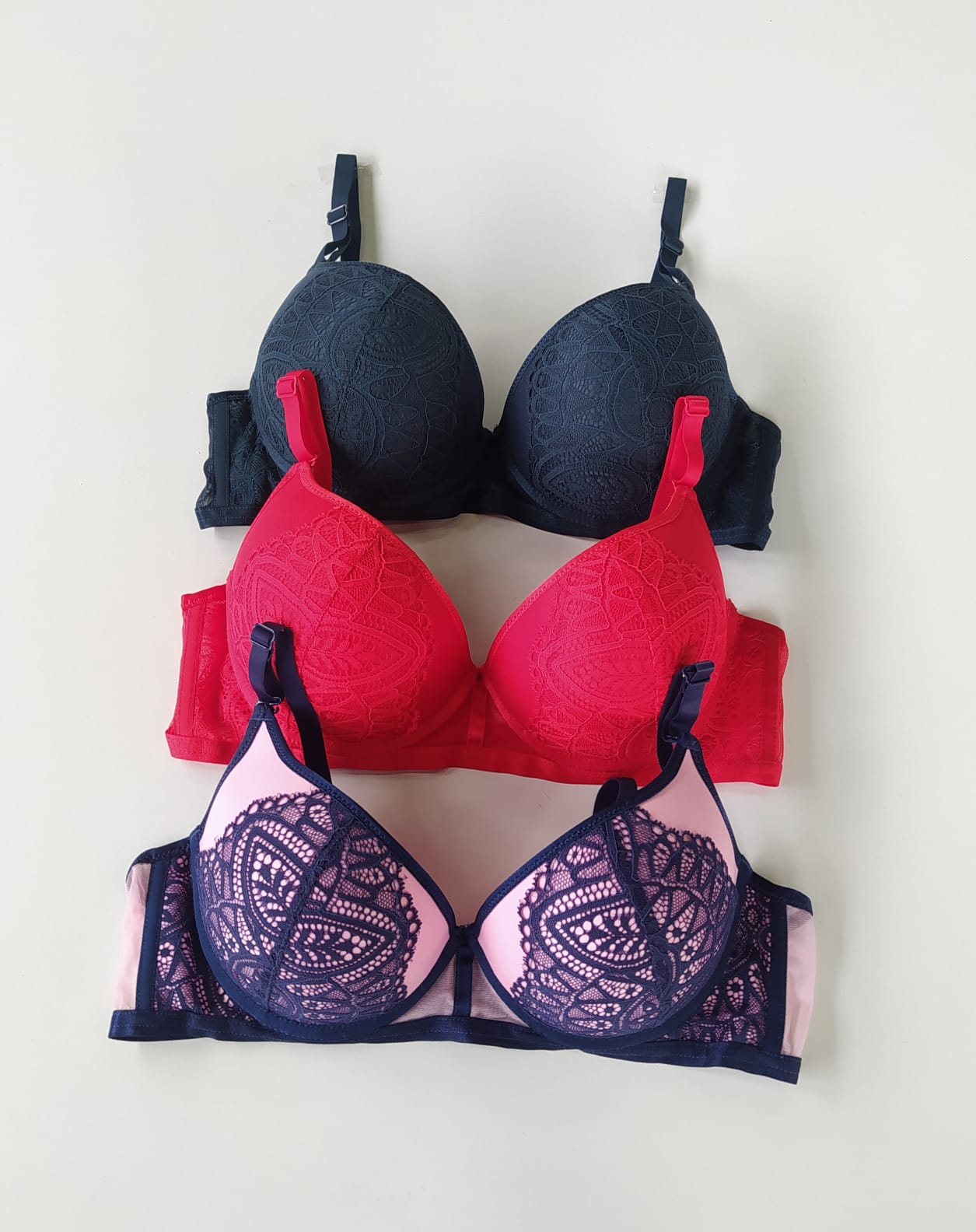 Biustonosz o miseczce C z ozdobną siateczką, która dodaje wyjątkowego wdzięku. Ramiączka są regulowane i usztywniane. Biustonosz posiada zapięcie na dwie haftki.