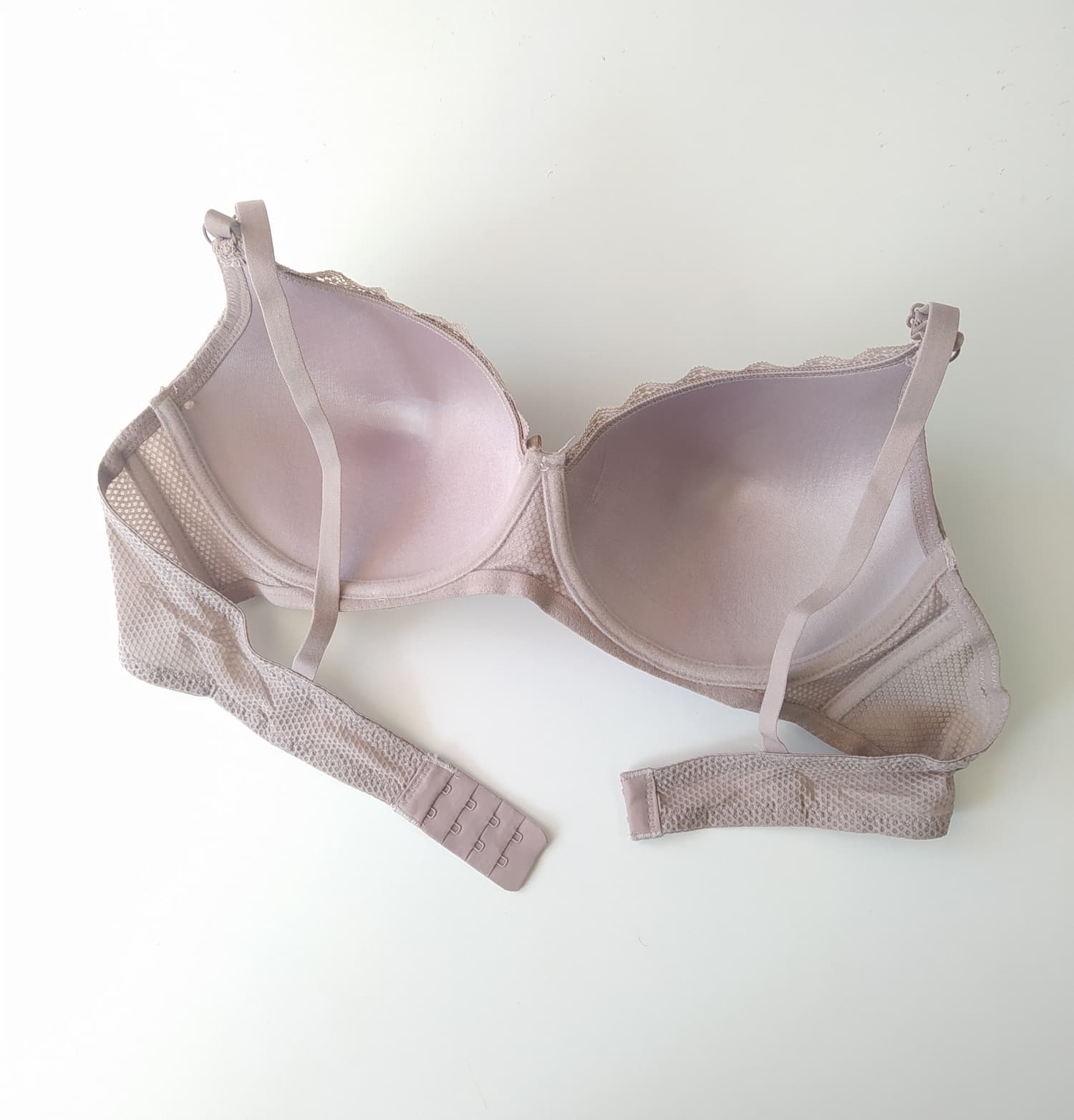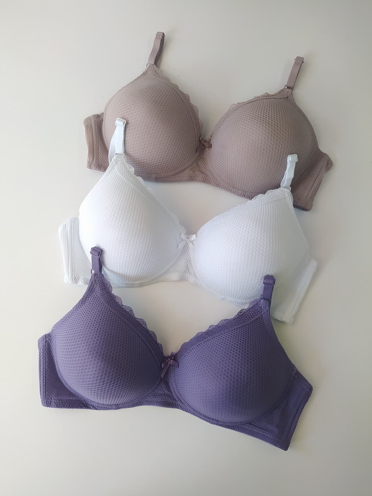 Miseczki z delikatnymi wypustkami nadają modelowi nowoczesnego charakteru i wyróżniają go na tle klasycznych fasonów. Strukturalna powierzchnia subtelnie podkreśla kształt biustu i dodaje całości oryginalnego wyglądu.