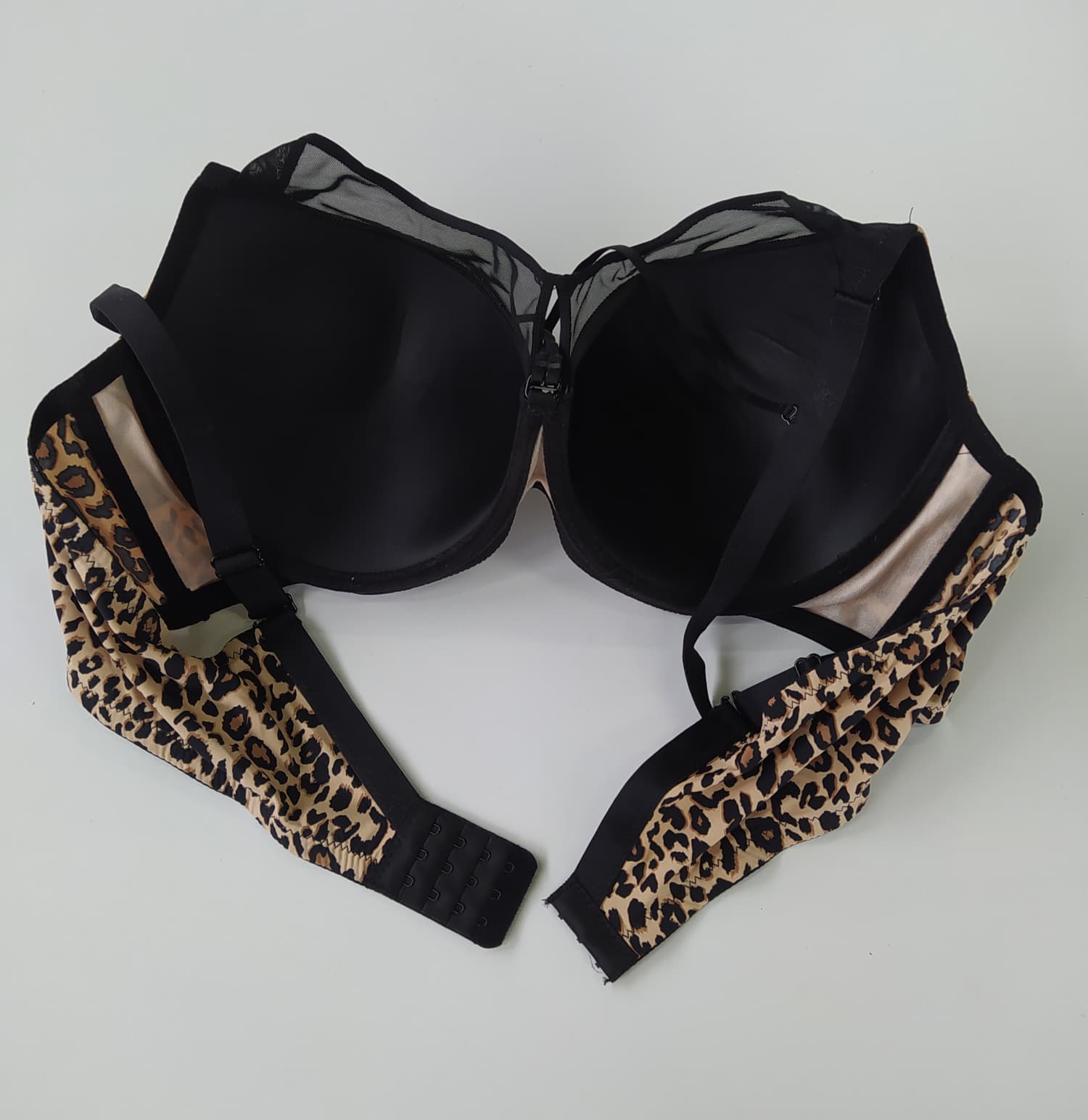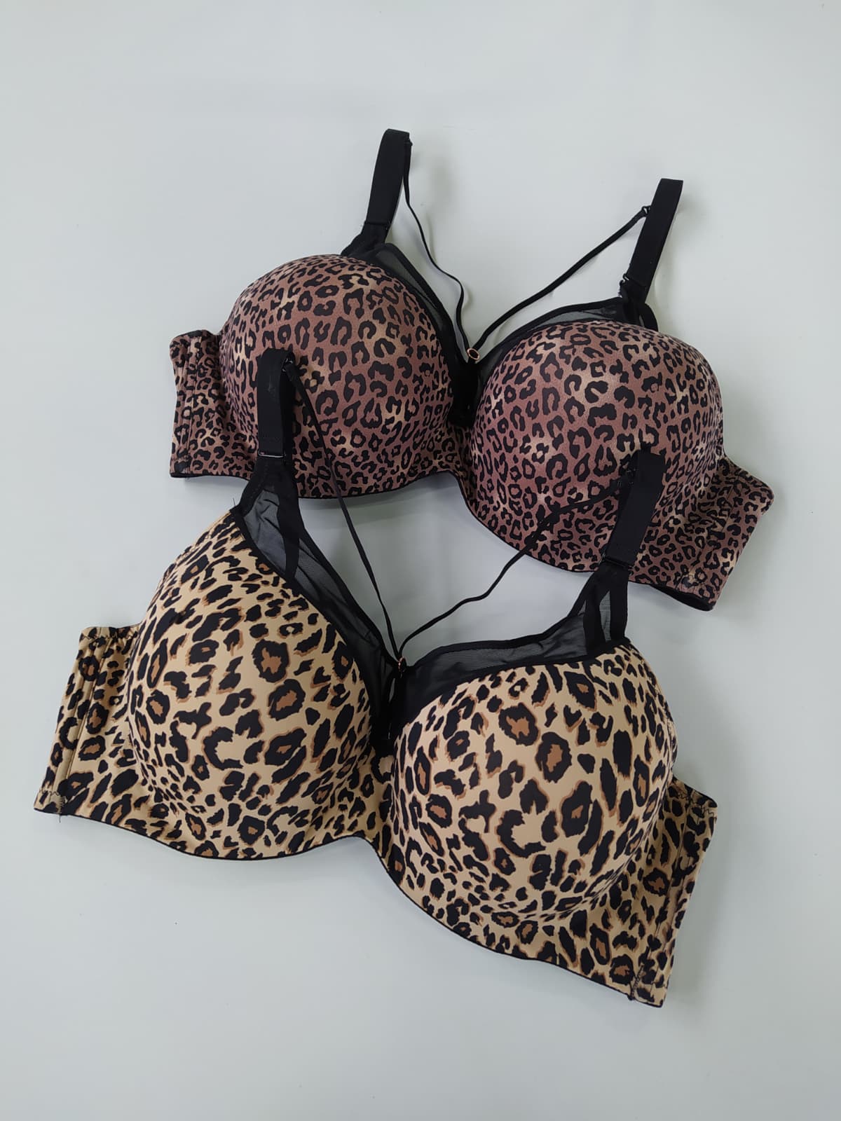 Biustonosz Antonina – miseczka E, panterka z ozdobnymi paseczkami