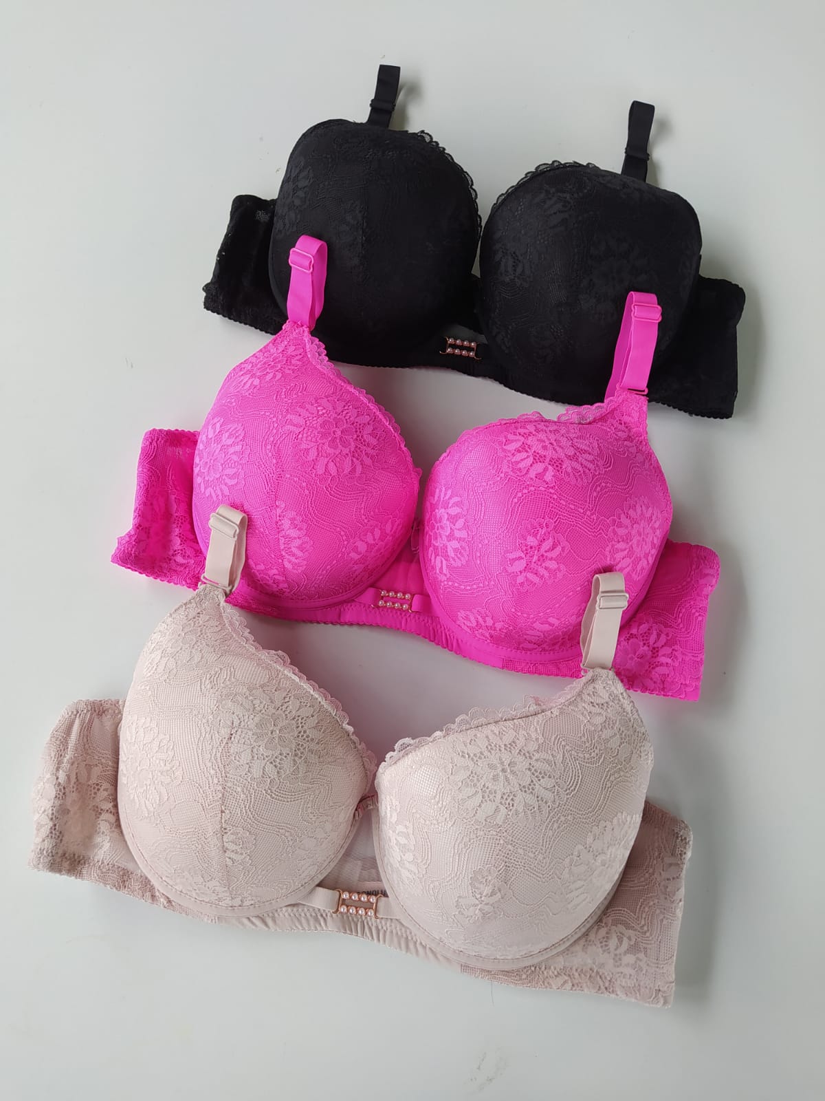 • Ozdobna kokardka i złoty detal z perełkami – eleganckie wykończenie między miseczkami dodaje klasy i wyjątkowego charakteru.