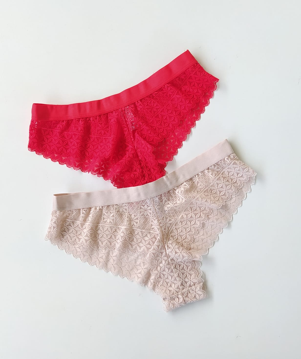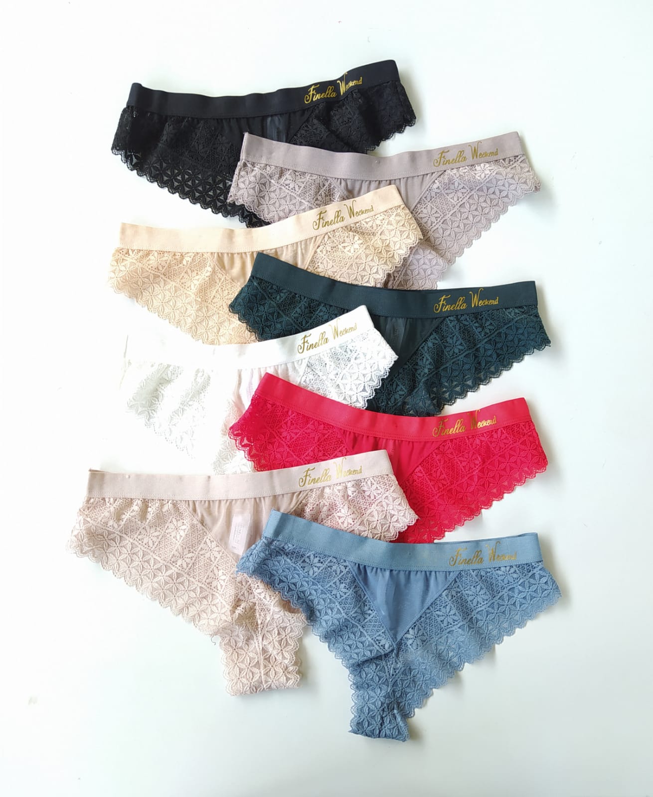 Brazyliany Alfa – koronkowe, z siateczką i ozdobnym napisem