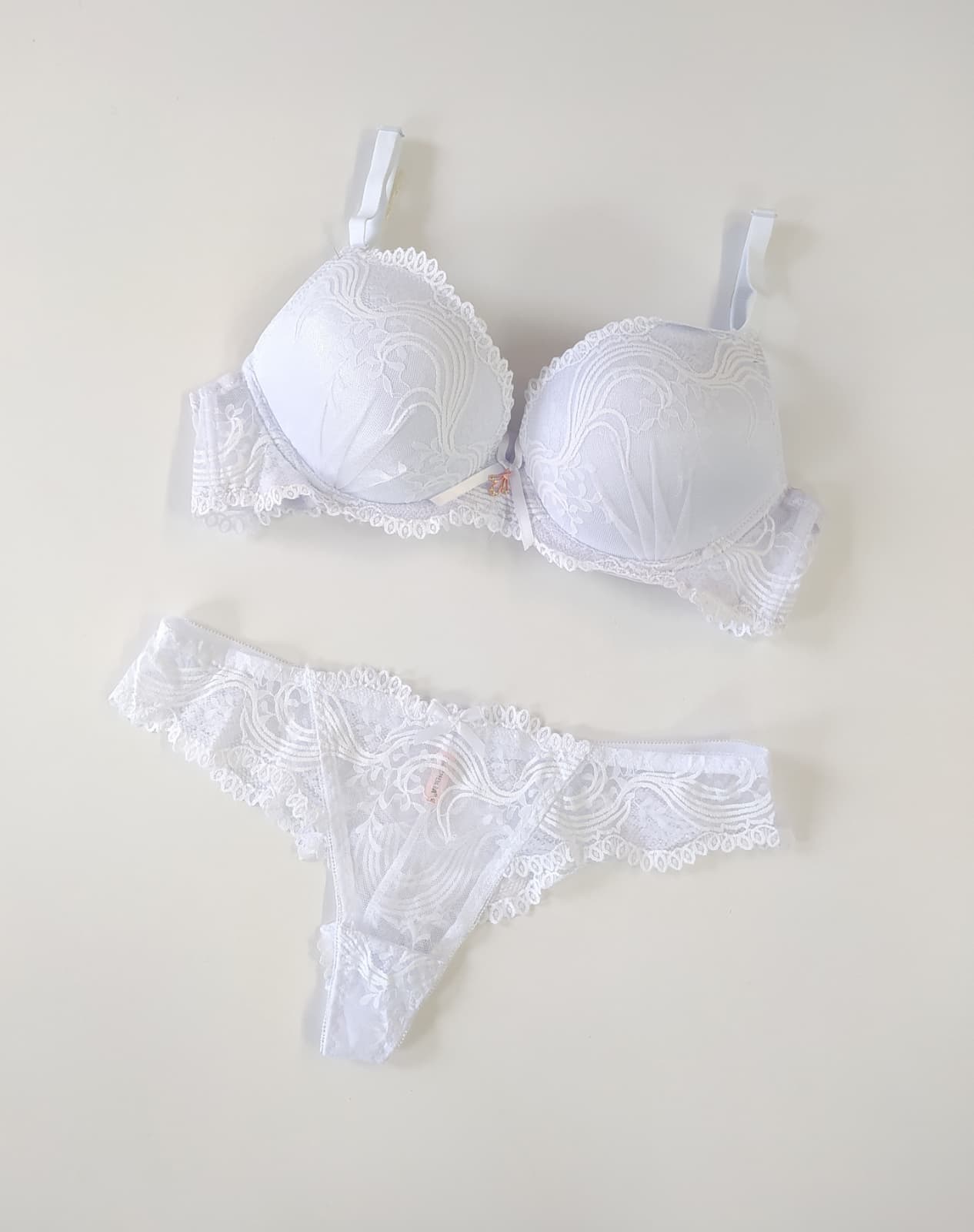 Kobiecy komplet bielizny w miseczce B, który podkreśla dekolt i dodaje sylwetce zmysłowego charakteru. Biustonosz z efektem push-up unosi biust i optycznie go powiększa, tworząc pełniejszy i bardziej wyrazisty kształt.