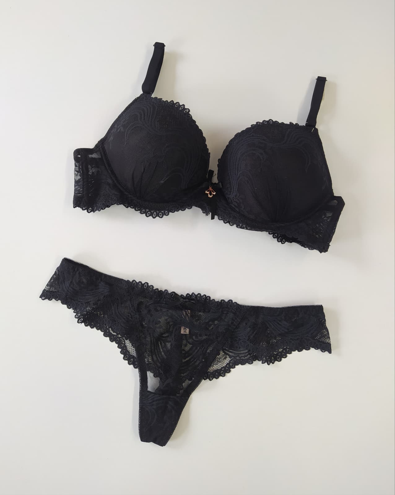 Zmysłowy komplet bielizny damskiej w miseczce B, który podkreśla sylwetkę i przyciąga uwagę oryginalnym detalem. Biustonosz z efektem push-up unosi i modeluje biust, nadając mu pełniejszy, atrakcyjny kształt.