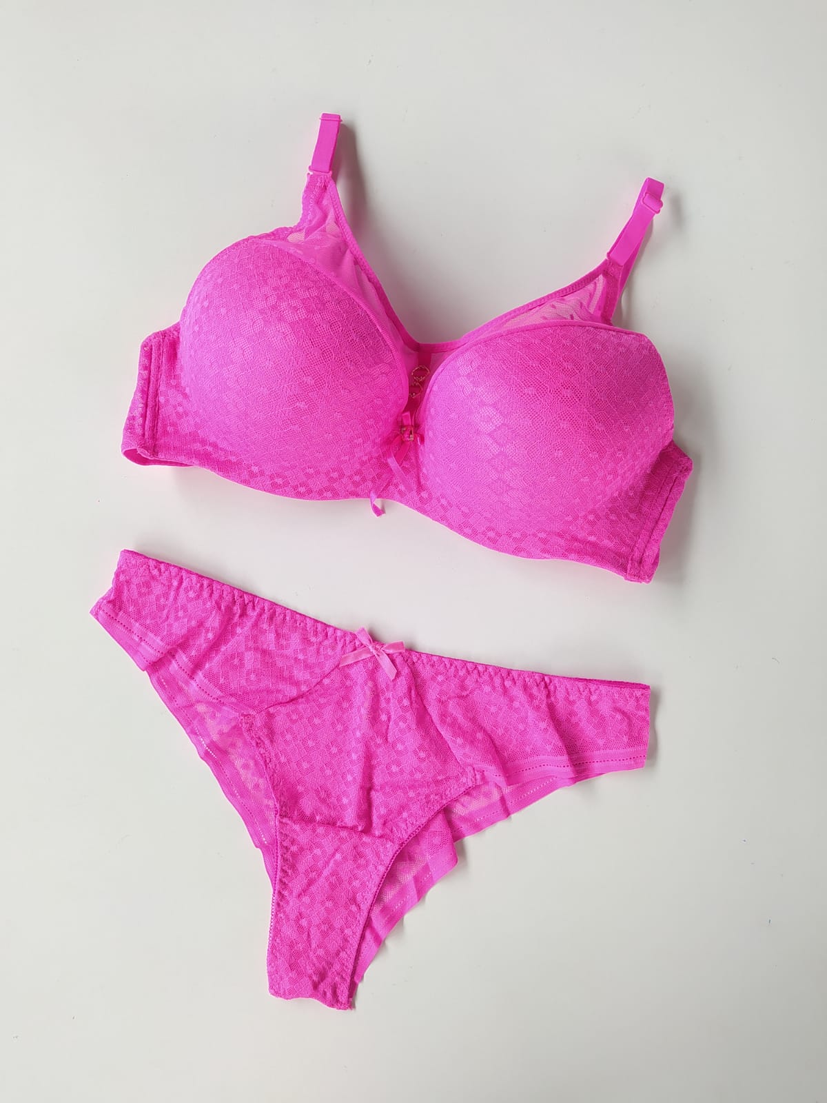Komplet bielizny to połączenie wygody i subtelnego uroku. Biustonosz w miseczce C został zaprojektowany tak, aby podkreślać naturalny kształt biustu i zapewniać komfort noszenia. Delikatna, ozdobna siateczka nadaje całości lekkości i eleganckiego charakteru. Do zestawu dołączono majtki dostępne w rozmiarach od L do 2XL – idealnie dopasowują się do sylwetki, gwarantując swobodę ruchów i wygodę przez cały dzień. To komplet, który świetnie sprawdzi się zarówno na co dzień, jak i w wyjątkowych chwilach.