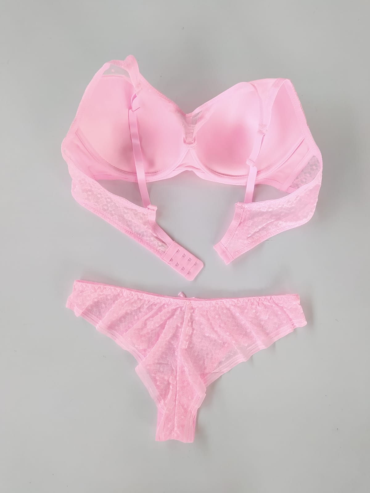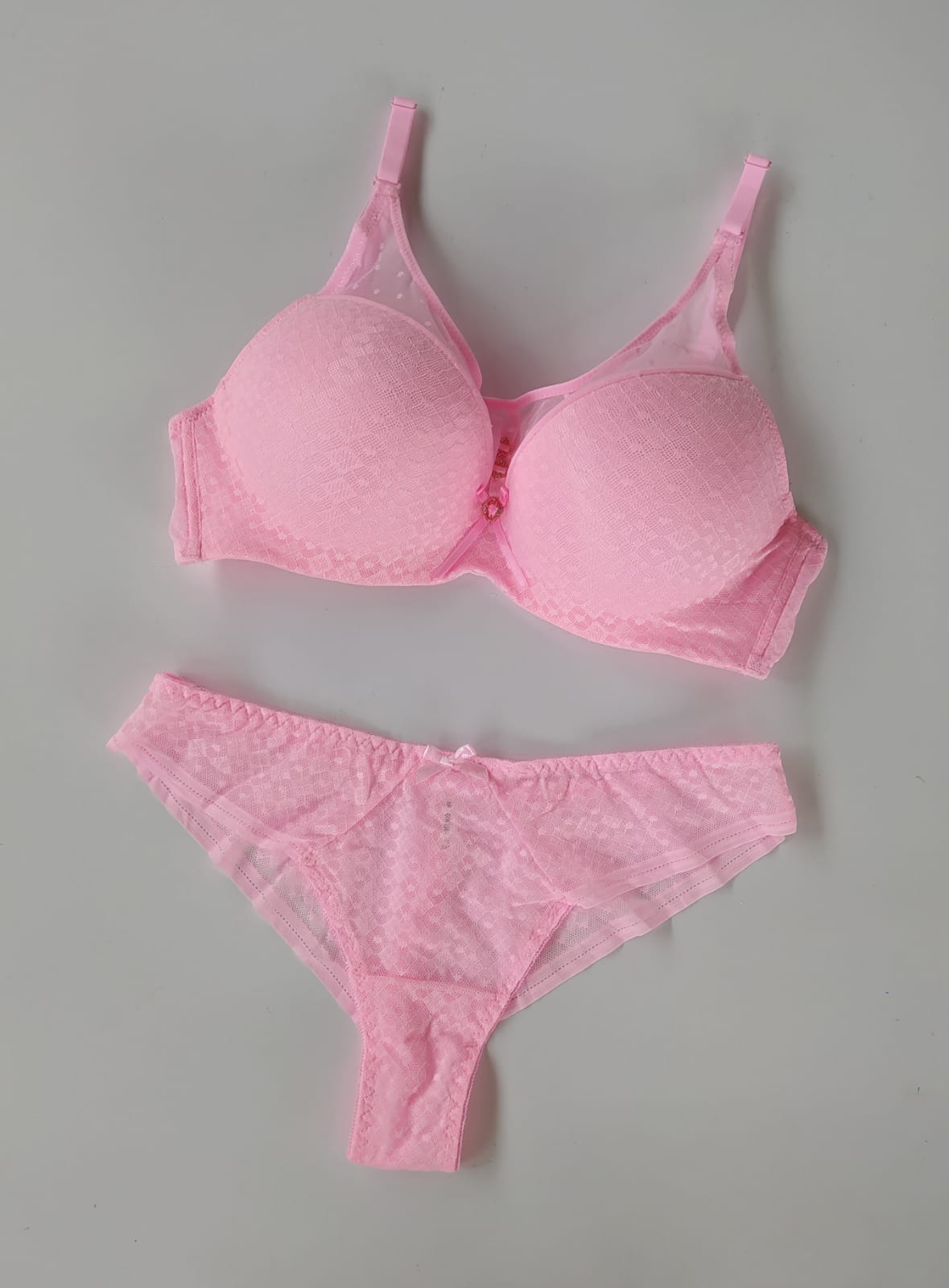 Komplet bielizny to połączenie wygody i subtelnego uroku. Biustonosz w miseczce C został zaprojektowany tak, aby podkreślać naturalny kształt biustu i zapewniać komfort noszenia. Delikatna, ozdobna siateczka nadaje całości lekkości i eleganckiego charakteru. Do zestawu dołączono majtki dostępne w rozmiarach od L do 2XL – idealnie dopasowują się do sylwetki, gwarantując swobodę ruchów i wygodę przez cały dzień. To komplet, który świetnie sprawdzi się zarówno na co dzień, jak i w wyjątkowych chwilach.