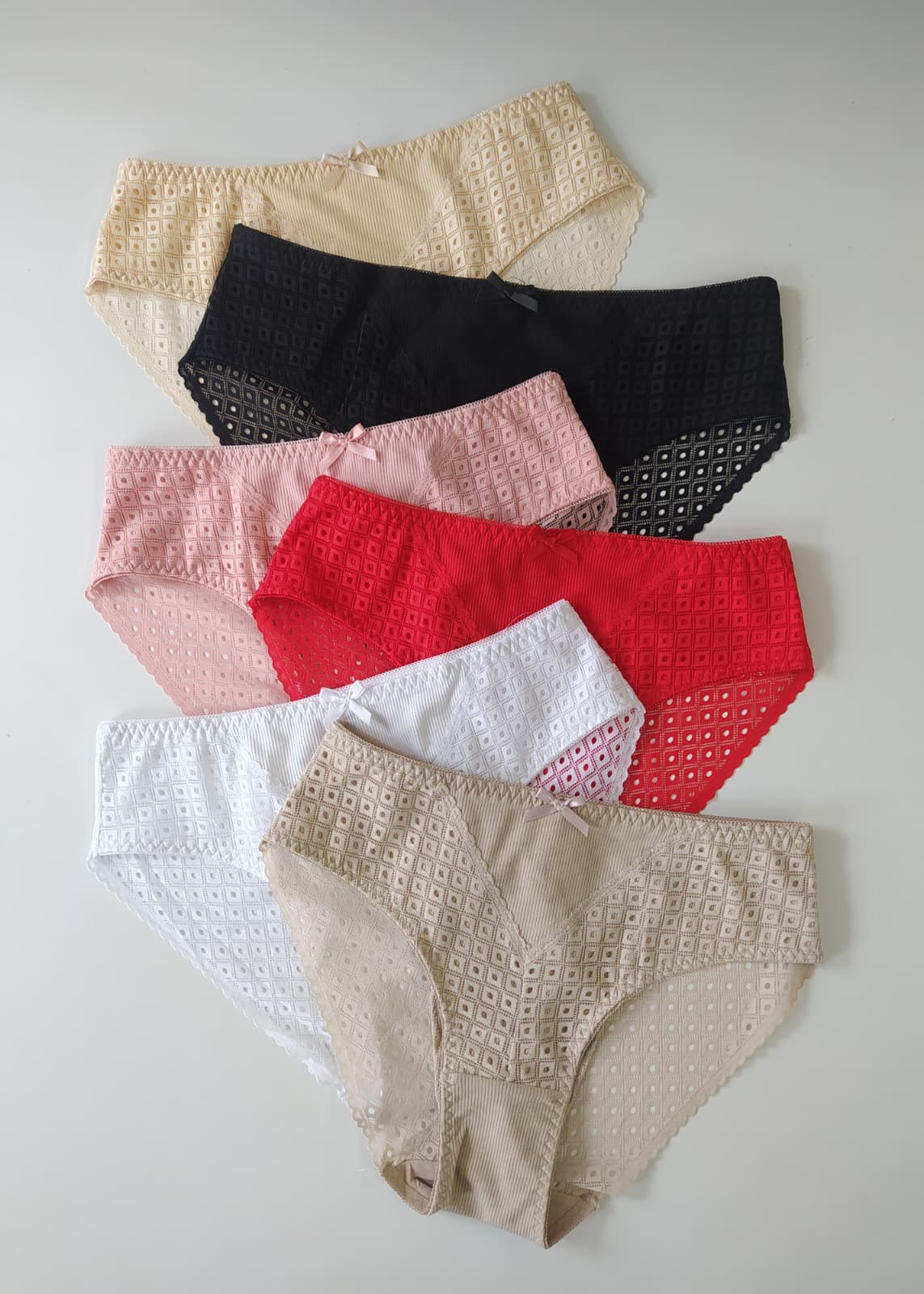 Majtki Calista – bawełniane, wysoki stan, prążkowane, wzór w romby, koronka