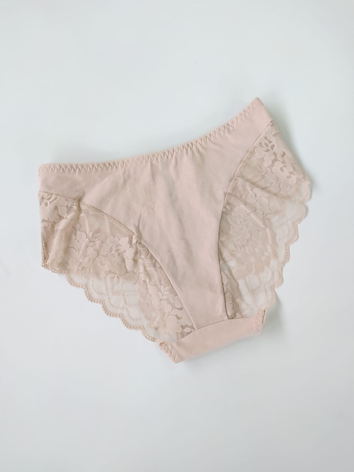 Majtki Karen – bawełniane, z koronkowym obszyciem i subtelną siateczką, tył gładki