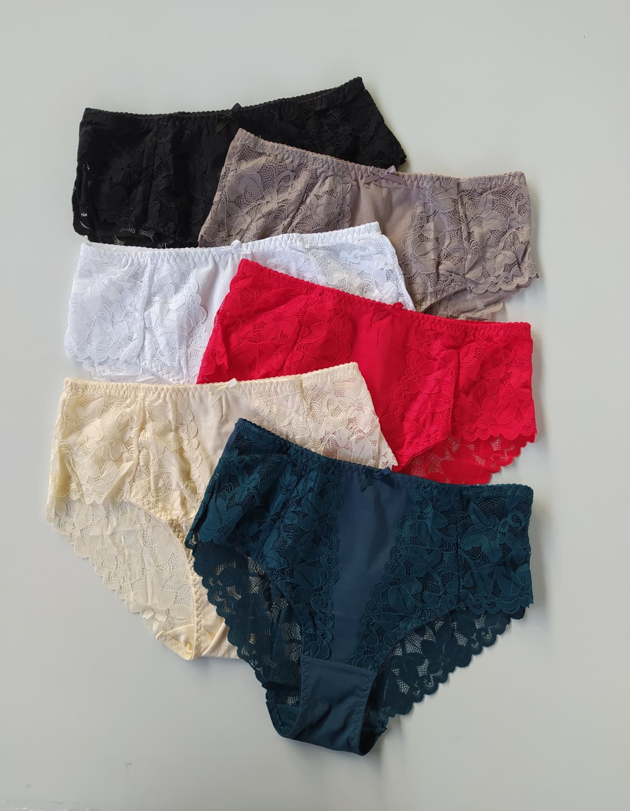 Majtki damskie z wysokim stanem to idealne połączenie komfortu, elegancji i wysokiej jakości wykonania. Model został stworzony z myślą o wygodzie na co dzień, a naturalna bawełna zapewnia przyjemne dopasowanie do sylwetki. Przód wykonany z gładkiego materiału, natomiast tył łączy delikatną koronkę z materiałem, nadając bieliźnie kobiecego i eleganckiego charakteru. Wysoki stan zapewnia komfort i dobre podtrzymanie, a staranne wykończenie gwarantuje trwałość i wygodę noszenia. Model dostępny w rozmiarach od 2XL do 4XL.