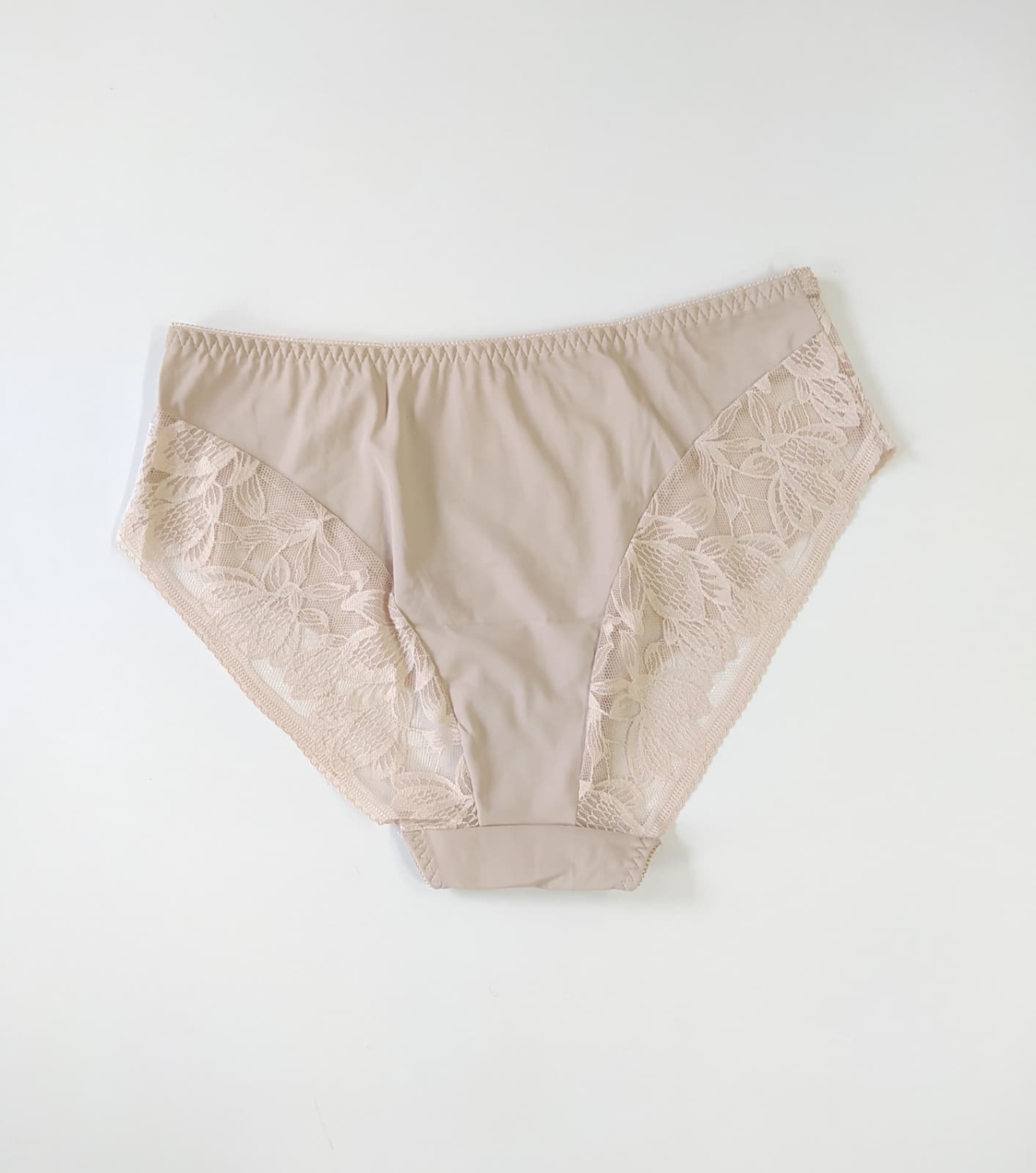 Koronkowe wstawki po obu stronach nadają bieliźnie lekkości i delikatnej zmysłowości, a ozdobna kokardka dodaje romantycznego akcentu. Kwiatowy wzór wprowadza świeżość i podkreśla kobiecy charakter modelu.