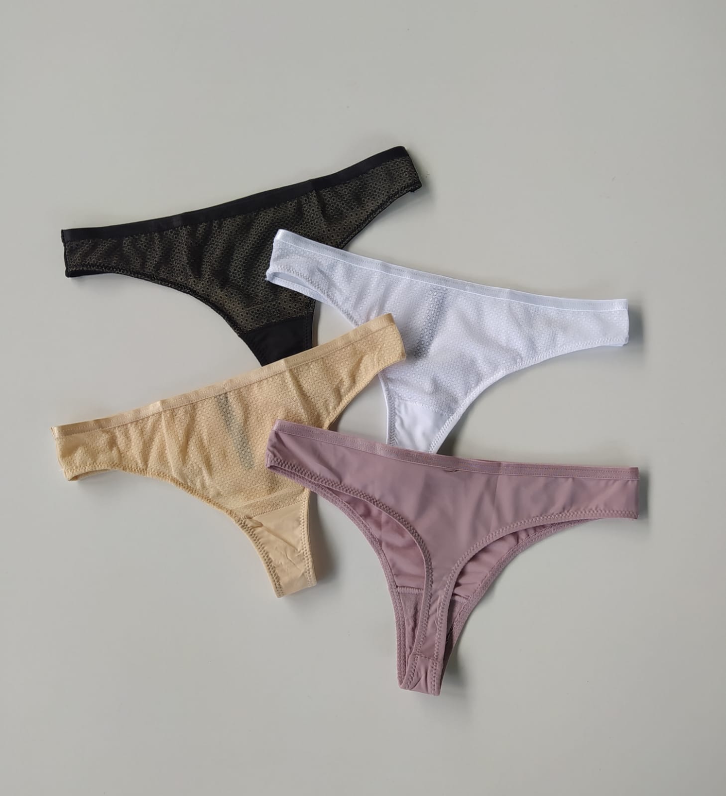 Delikatne stringi z wytłoczeniami na siateczce dodają zmysłowego wyrazu. Wykonane są z bardzo delikatnego i chłodnego materiału.