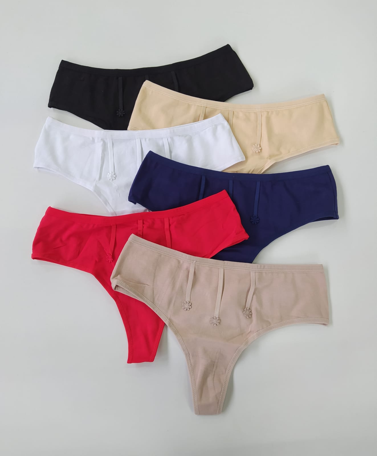 Stringi Clio – bawełniane, gładkie z ozdobnymi kwiatkami
