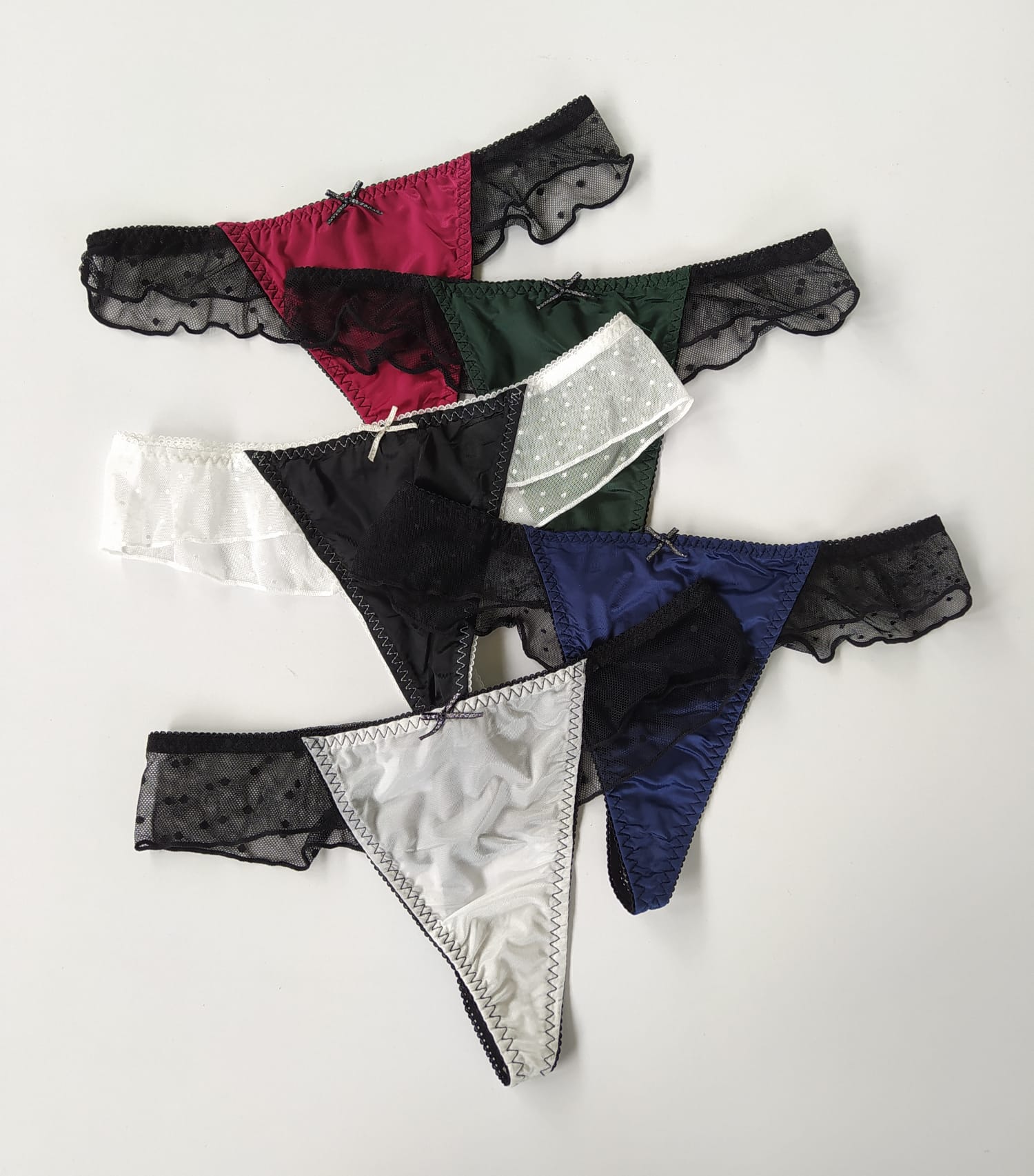 Stringi satynowe z elementami delikatnej siateczki to elegancka i uwodzicielska bielizna, która łączy w sobie luksusowy połysk satyny z subtelną przejrzystością siateczki. Dostępne w różnych kolorach, od klasycznej czerni i bieli, po zmysłowe odcienie zieleni czy granatu.